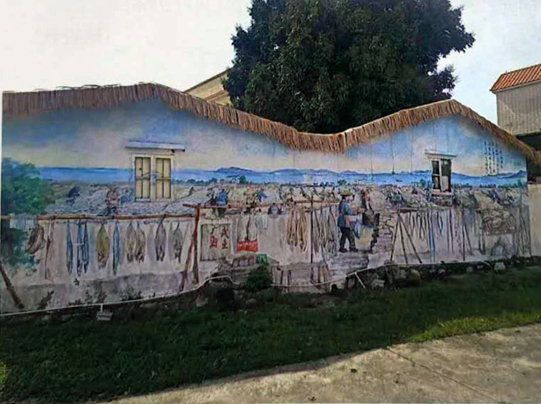 除此之外,广海政府精准发力,为深 度挖掘菩提古树历史文化底蕴,让群众近 距离体验“海丝”之路的民俗风情,在村 中4棵菩提古树周边巷前屋后采用喷绘墙 画的方法,绘出一幅幅精彩夺目,活灵活 现的广海海永无波石刻、 广海卫城墙遗址、紫花岗 烽火台、广海打龙船及广 海咸鱼制作技艺等11幅 非物质文化遗产壁画栩栩 如生,重现出广海古城历 史文化和海丝文化风情风 貌,让你既可以领略菩提 古树文化和“海丝”文化 历史底蕴,又能感受到古 树、乡村和田园的独特风 光,让你望得见白云蓝 天、看得见青山绿水、记 得住乡愁。